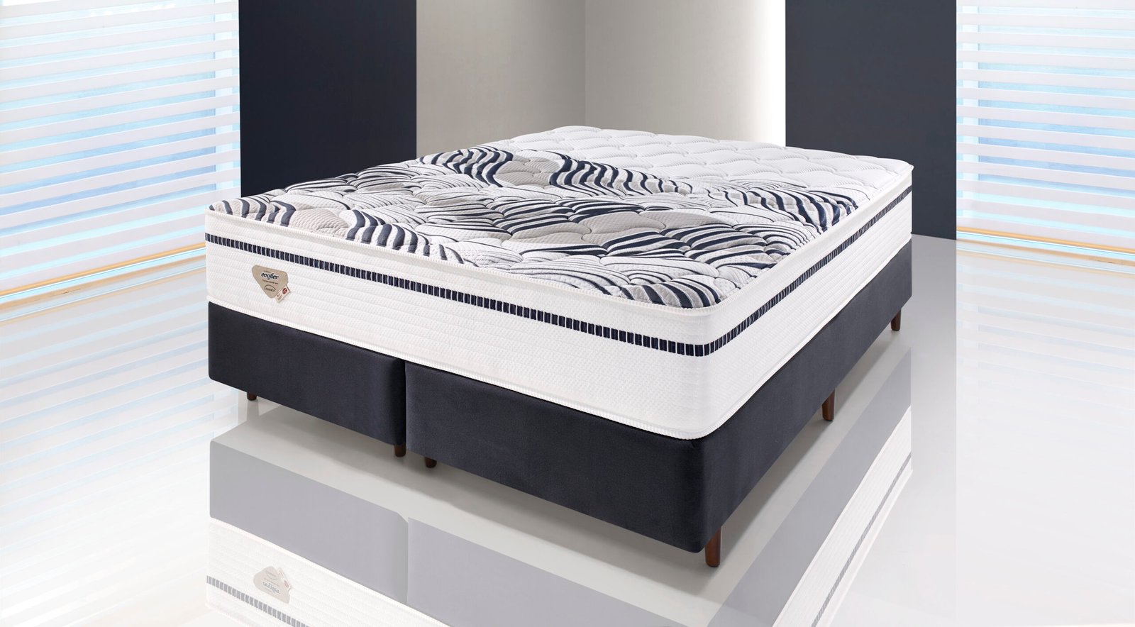 Requinte, imponência, qualidade, aconchego, design…são poucas características para definir este colchão especial. Que foi desenvolvido pela Ecoflex para clientes especiais. Um produto diferente de tudo o que se encontra no mercado convencional de colchões. Modelo Eco Sensitive, sensibilidade em toque, conforto, durabilidade. Um colchão com dupla camada de molejo, sendo um sistema de molas ensacadas especiais, a mola ensacada High Power, resistente, para consumidores de até 150 kg, com acabamento no pillow top com outro sistema de mola ensacada, a Low, que além da resistência, se adere com perfeição ao contorno do corpo gerando um conforto extremo.